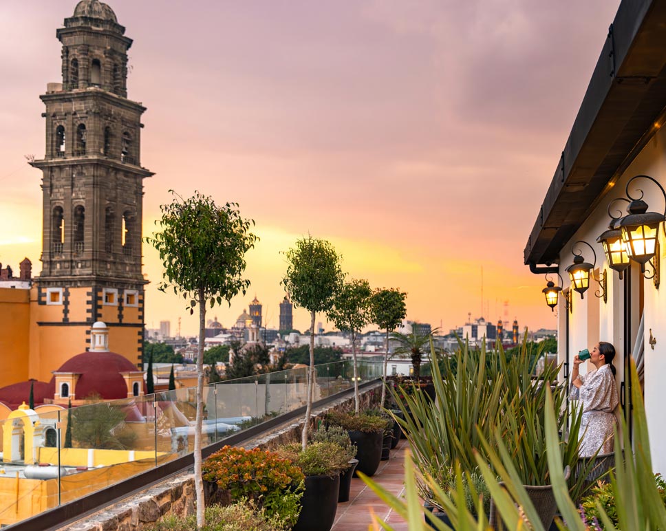 El rooftop con alberca invita a sumergirse y mirar desde allí los fastuosos cielos de Puebla, ideal para una tarde con tu media naranja. Además, también tiene un spa para disfrutar en pareja.
