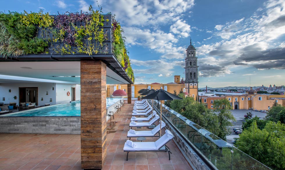 El rooftop con alberca invita a sumergirse y mirar desde allí los fastuosos cielos de Puebla, ideal para una tarde con tu media naranja. Además, también tiene un spa para disfrutar en pareja.