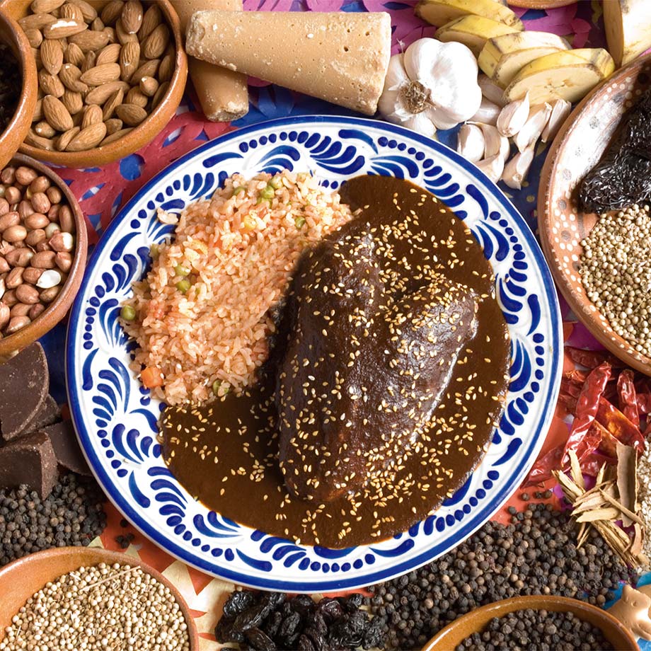 These days, mole is a complex, sophisticated dish which is not just thrown together. It is a key part of Puebla’s cuisine, and that of all Mexico. For this reason, whether the mole is served with turkey, chicken, or pork loin, it symbolizes celebration, gathering, and family because it was and is a main dish in celebrations such as weddings. So obviously it has to find a place on your menu!