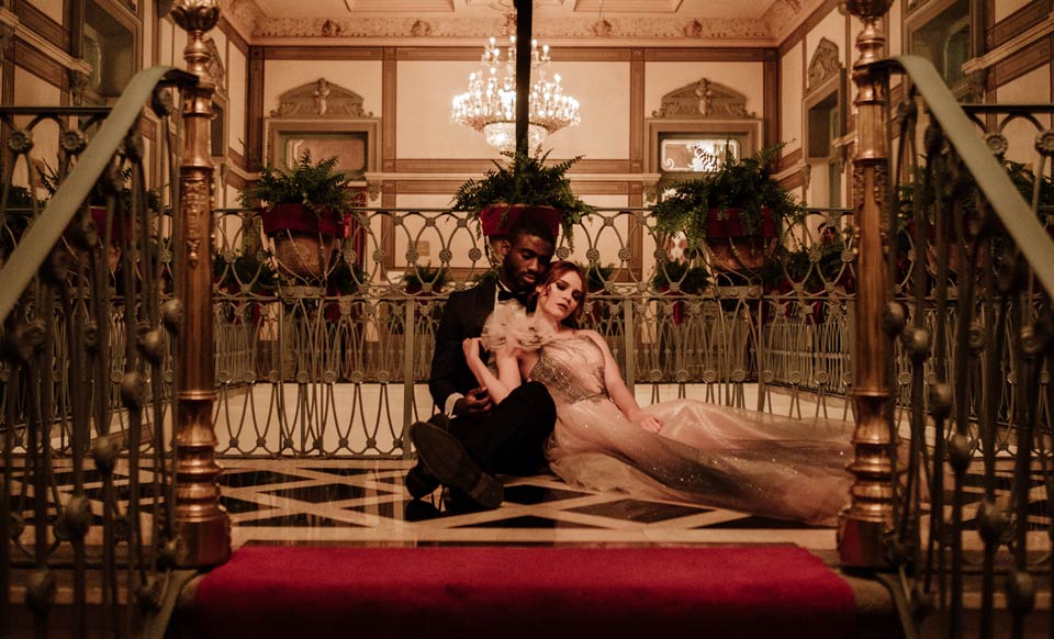Its halls, adorned with baroque detailing, wood floors, stained glass windows, crystal chandeliers, and balconies overlooking the historic center, make it an unbelievably magical and romantic setting.